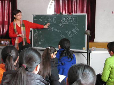培訓中,楊總在與教師親切交流 傾心聆聽