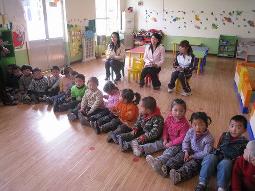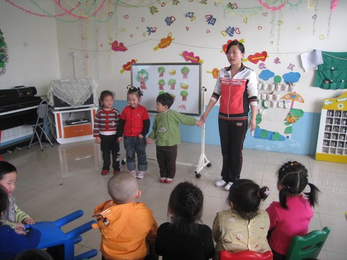 金寶貝幼兒園的老師和孩子們一起開(kāi)心上課