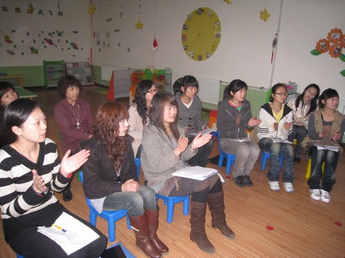 3月21日的濟(jì)寧細(xì)雨蒙蒙,但全體教師都情緒高漲,熱烈歡迎來(lái)自北京的王營(yíng)營(yíng)老師和羅媛老師。首先,王老師對(duì)我們金寶貝的教師進(jìn)行了團(tuán)體打造,讓大家都認(rèn)識(shí)到“我是一切問(wèn)題的根源,愛(ài)是最后的歸宿”。然后,對(duì)紅纓的教育教學(xué)理念和課程有針對(duì)性的進(jìn)行了培訓(xùn),使全體教職員工在“團(tuán)隊(duì)意識(shí)、服務(wù)意識(shí)、課程意識(shí)”上都有了一個(gè)全新的提升。