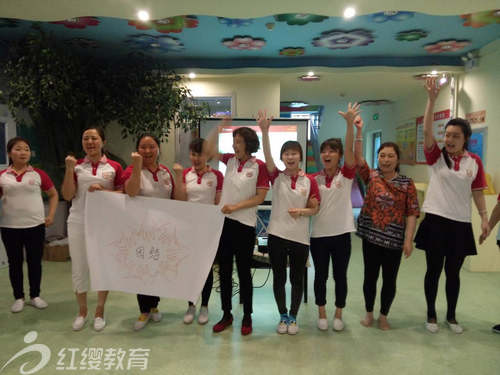 在教師們歡快的兔子舞中,團隊打造開始了,通過“鳳凰成人”、“風火輪”、“老師說”一系列的游戲活動,讓全體教職工懂得了互相關心、互相協助,團結向上,才能打造一個過硬的團隊。《紅纓美術》課的培訓后,教師們都交出了自己最滿意的作品。