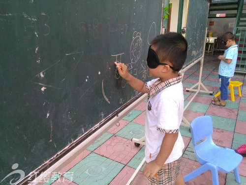 接下來就是室外的親子活動了,托小班的活動是“大家來找茬”,中大班的活動是“盲人作畫”。活動進行得緊張有序,家長和孩子們表現出極大的興趣。